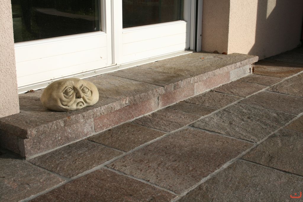 Material: Porphyr; Aussenanwendungen; Bahnen behauen (8730), Stufen behauen (8235), Setzstufen (8312)