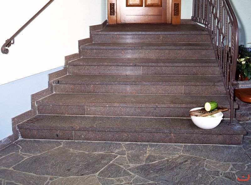 Bodenbelag, Beläge, Pflasterungen, Polygonplatten, Bruchplatten, Natursteinböden, Eingangsbereich, Stiegenanlagen, Treppen, Spiegel, Setzstufen